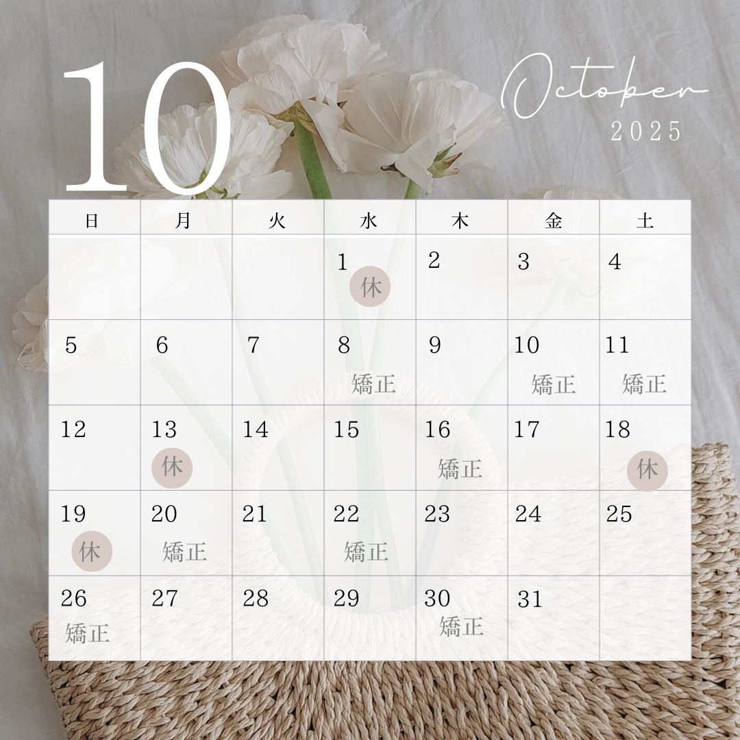 10月の休診日と矯正治療および歯並び無料相談の日程をお知らせいたします。